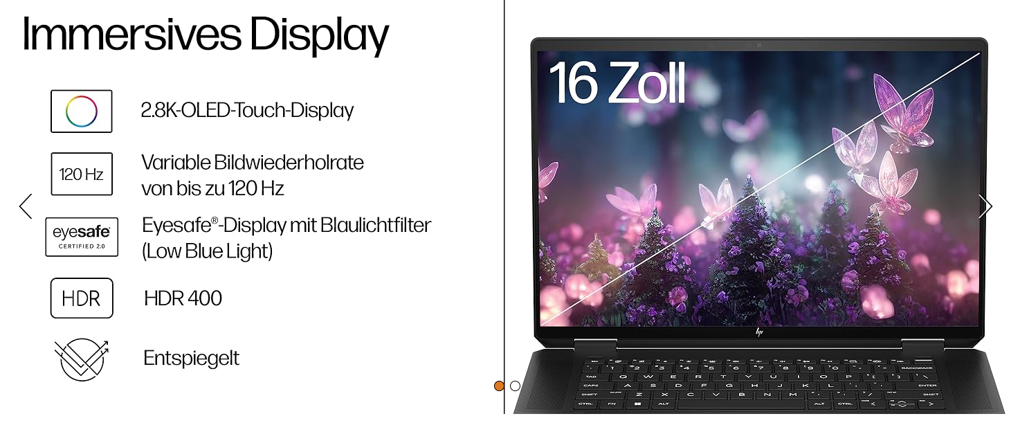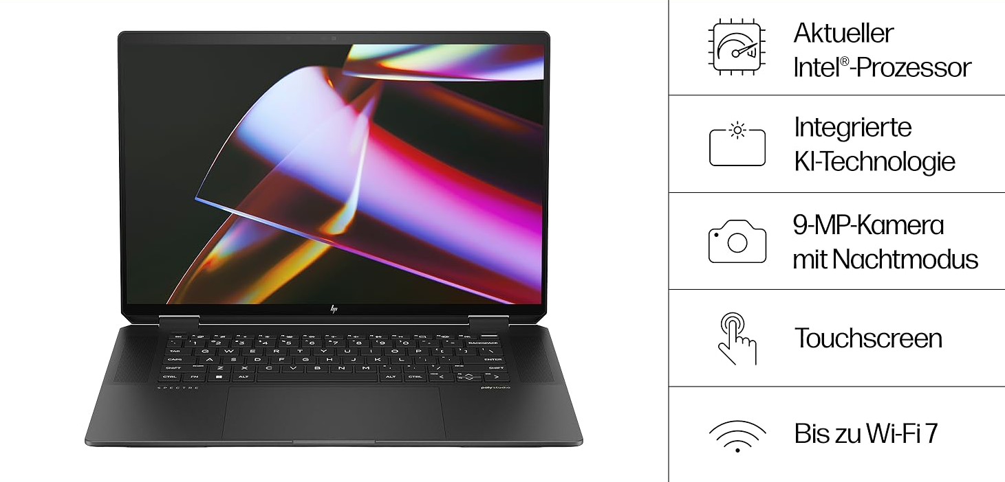 • HP Spectre x360 2-in-1 Convertible Laptop | Intel Core Ultra 7 155H with Integrated AI | 16 Inch WQXGA IPS Touchscreen | 16GB RAM | 1TB SSD | Intel Arc Graphics | Win11 | QWERTZ Copilot Key - Online Shop