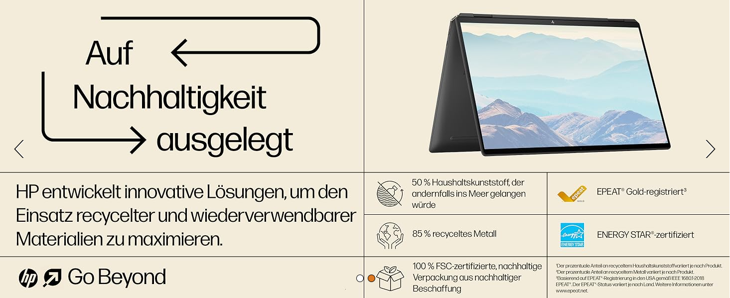 HP Spectre x360 2-in-1 Convertible Laptop | Intel Core Ultra 7 155H with Integrated AI | 16 Inch WQXGA IPS Touchscreen | 16GB RAM | 1TB SSD | Intel Arc Graphics | Win11 | QWERTZ Copilot Key