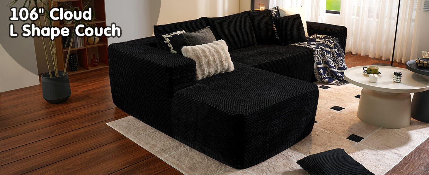 Ovios 106 Cloud Sectional Couch with L-Shape Chaise,Modern Modular Sofa with Deep Seat, Upholstered Couches for Living Room Bedroom,No Assembly Required